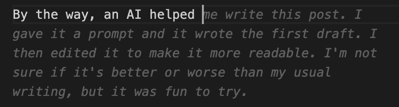 I've been having fun experimenting with GPT-3 via the OpenAI API. For those who don't know, GPT-3 is an advanced language model that has been trained on hundreds of billions of words. Basically, its creators fed it a lot of websites, books, and Wikipedia articles. If you give it a prompt, it can continue the text in a way that is sometimes indistinguishable from a human.